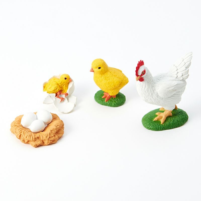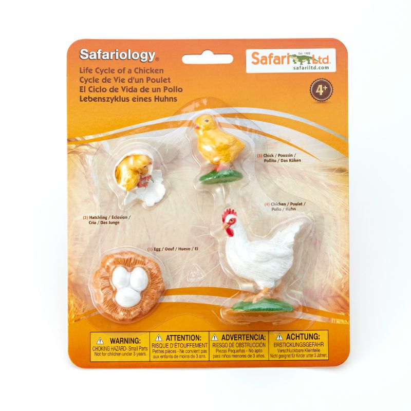 サファリ社の「Montessori Toys」カテゴリーのうちアイ・シー・イー幼児教室のモンテッソーリ教師が「これはぜひ文化教育の教材として触れて欲しい」とセレクトしたものを販売しています。にわとりの成長過程を学べるフィギュアがセットになっています。