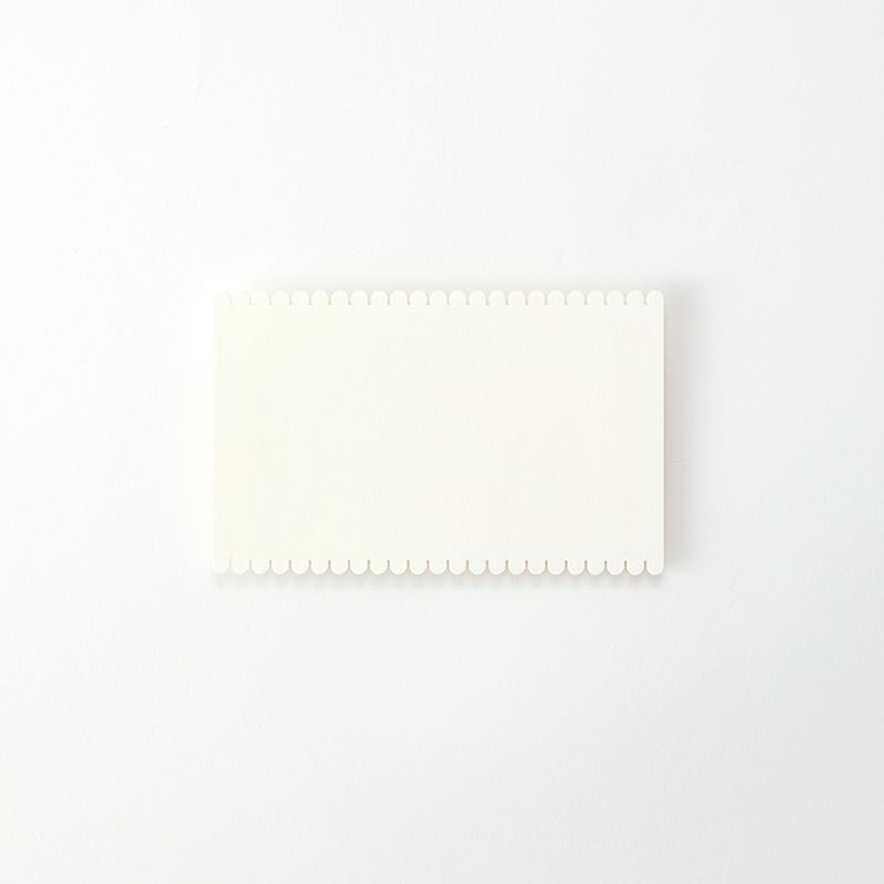 「糸を巻くお仕事」としてはじめてのお子さまも完成できるよう、波の大きさはやや大きめになっています。適度な張りがある厚さとお子さまに持ちやすいサイズで、掛けた糸の作り出す模様がきれいに見えるよう表も裏も白くなっています。食品の容器に使われる特殊な紙を使用し、角は丸く仕上げ、こどもへの安全性についての配慮もされています。