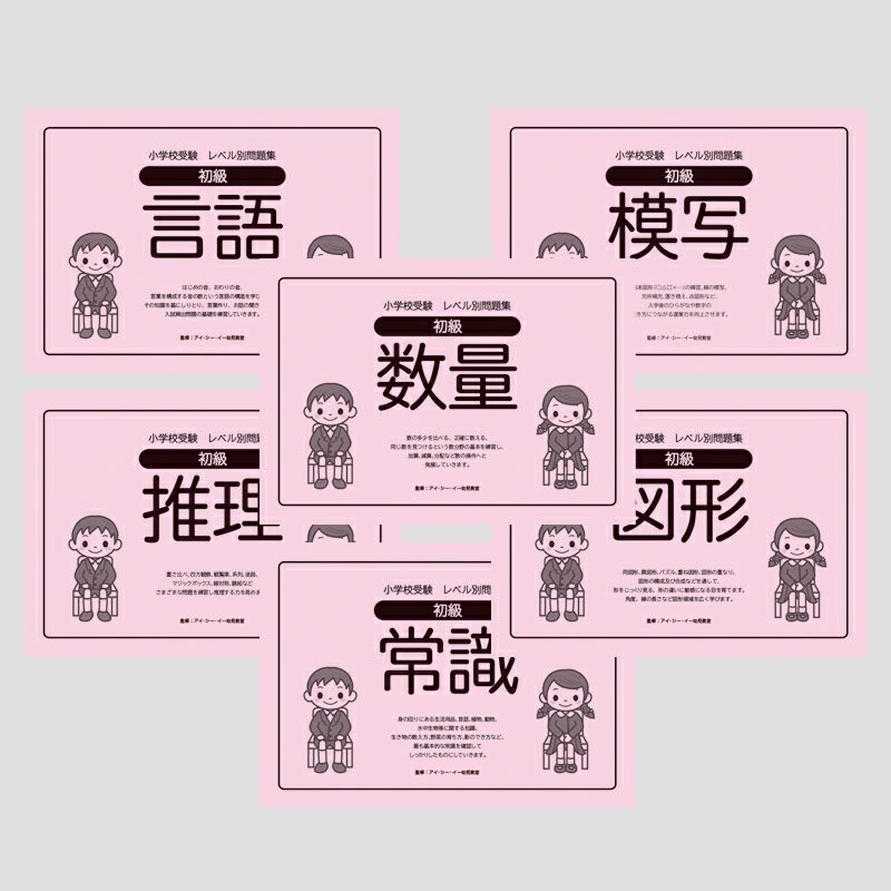 6つの分野が難易度ごとに一冊になっています。初級は小学校受験に関する基本的な問題です。中級は初級編で身につけた力をもとに取り組む標準的な受験レベルの問題です。上級は難関校受験に適した知識とスピードを要求される問題です。受験校の難度にあわせてお選びください。通常は、一日各分野を3~4枚ずつお子さまの様子を見ながら取り組みましょう。分からなかった問題は、時機を見て再度チャレンジしましょう。