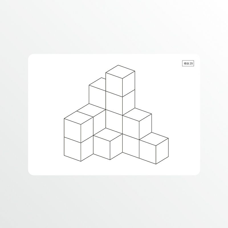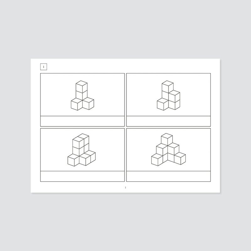 早くから具体物に触れる環境を作ることで、立体の構成の理解がスムーズになります。最初は形や重さを感覚といった五感で十分に身につけ、専用問題集は3歳以降に初級から使用しましょう。