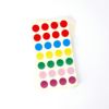 シールはりがはじめてのお子さまでも扱いやすい直径18mmの丸シールです。「シールはり台紙」(別売り)に描かれた絵の枠に沿ってシールをはります。25シートとたっぷり入っているので好きな色を思う存分はることができます。