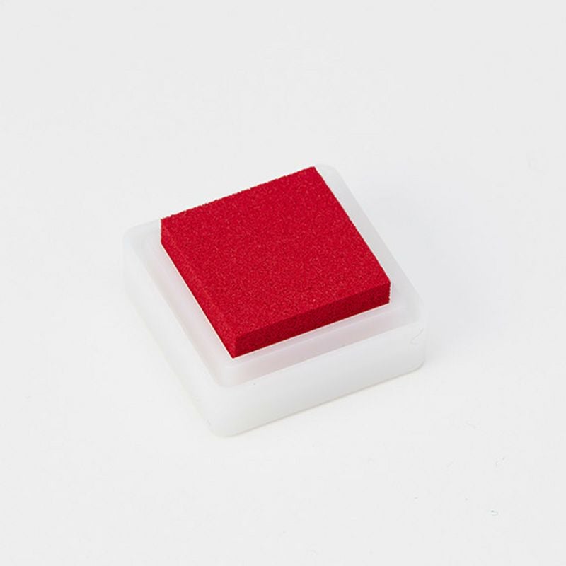 「ゴム印スタンプセット」(別売り)専用のインクパッドです。盤面サイズはゴム印面より少しだけ大きい24×24mm。パッドを手に持って軽くたたくようにスタンプにインクをつけることができます。水性ピグメントインク(顔料系インク)なので耐光性、耐水性が強く、また粒子なので紙ににじみにくく長期保存性に優れています。乾燥時間の目安は10分です。