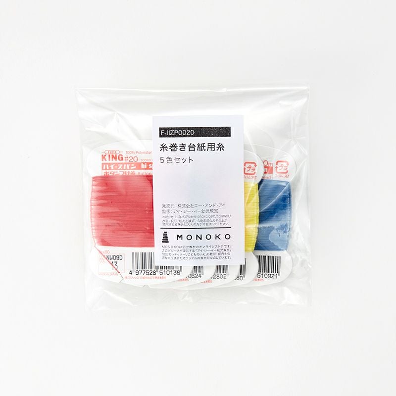 糸巻き台紙にかけやすい、やや太めの木綿糸の5色セットです。