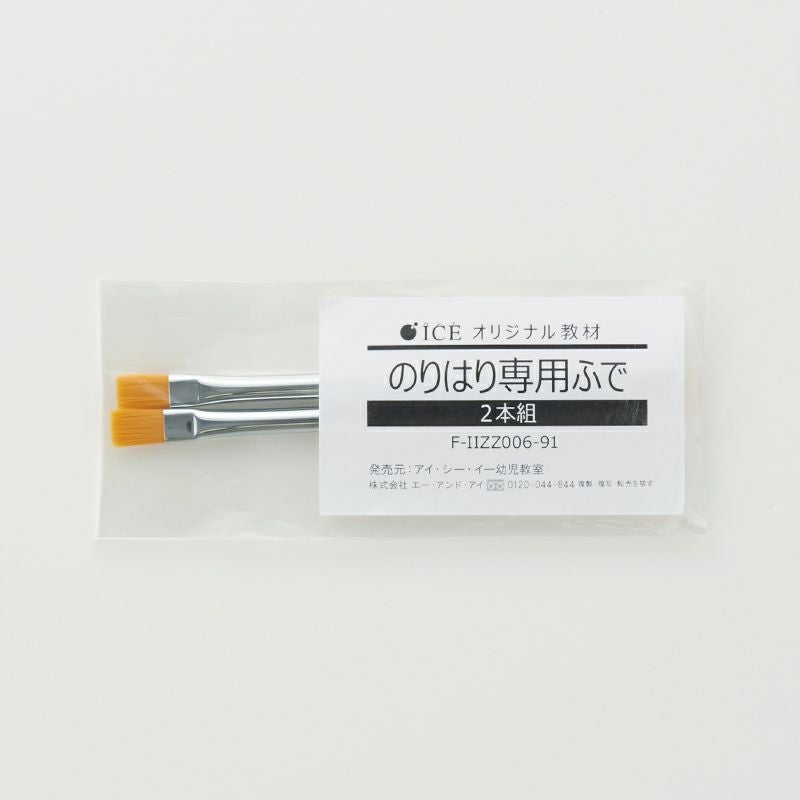 色紙にのりを塗り、台紙に書かれた同じ形の場所にはります。のりはり台紙は番号が進むにつれて絵柄が複雑になり、はる色紙の枚数も増えていきます。最初は指でのりを塗り、慣れてきたら専用の筆を使用して「えんぴつを正しく持つ」練習をします。
