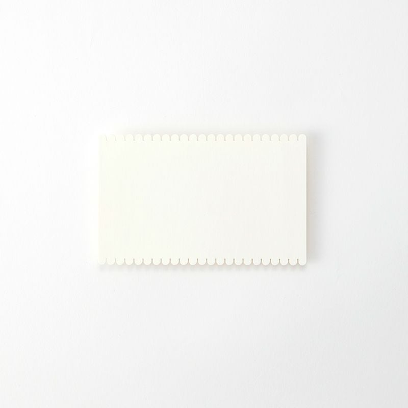 「糸を巻くお仕事」としてはじめてのお子さまも完成できるよう、波の大きさはやや大きめになっています。適度な張りがある厚さとお子さまに持ちやすいサイズで、掛けた糸の作り出す模様がきれいに見えるよう表も裏も白くなっています。食品の容器に使われる特殊な紙を使用し、角は丸く仕上げ、こどもへの安全性についての配慮もされています。