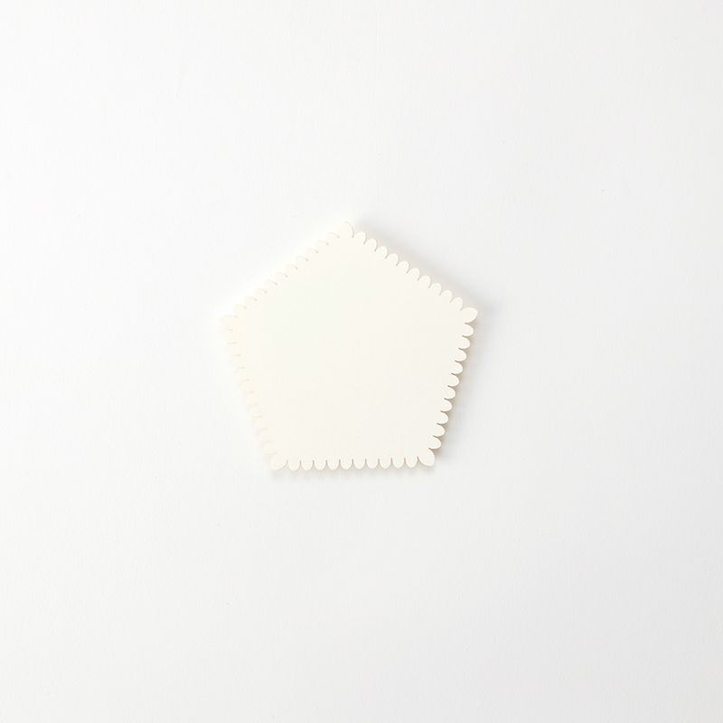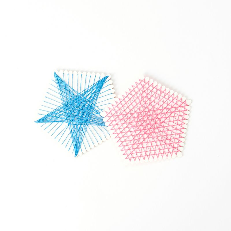 「糸を巻くお仕事」に慣れてきたお子さま向けにご用意いたしました。適度な張りがある厚さとお子さまに持ちやすいサイズで、掛けた糸の作り出す模様がきれいに見えるよう表も裏も白くなっています。食品の容器に使われる特殊な紙を使用し、角は丸く仕上げ、こどもへの安全性についての配慮もされています。