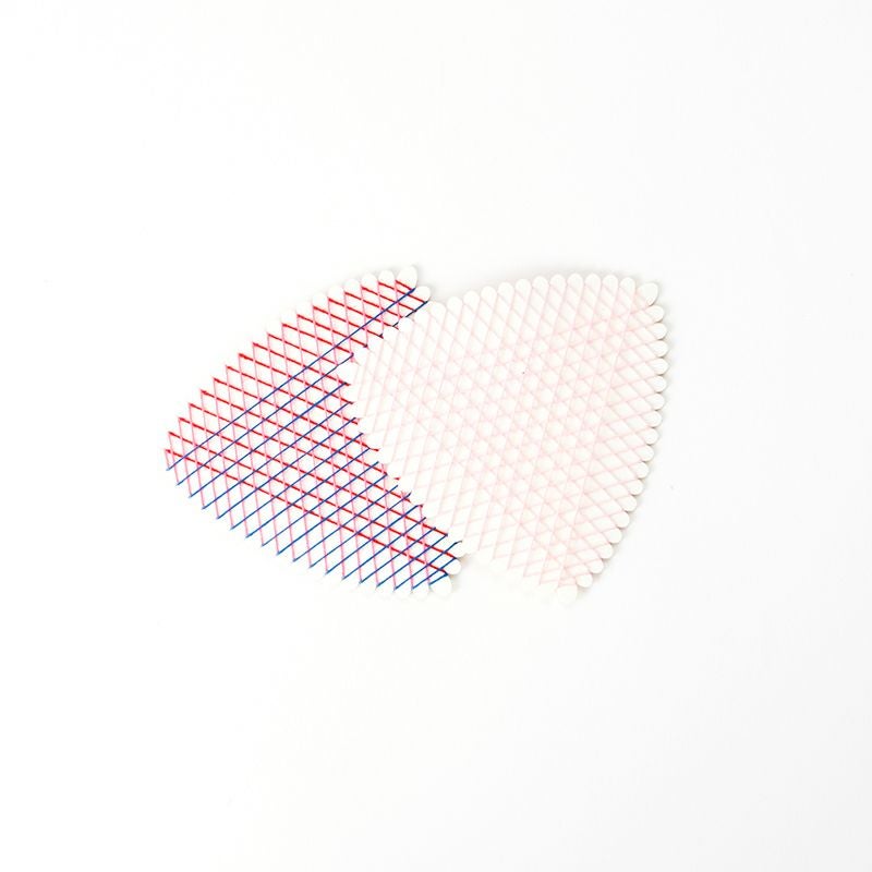 「糸を巻くお仕事」に慣れてきたお子さま向けにご用意いたしました。適度な張りがある厚さとお子さまに持ちやすいサイズで、掛けた糸の作り出す模様がきれいに見えるよう表も裏も白くなっています。食品の容器に使われる特殊な紙を使用し、角は丸く仕上げ、こどもへの安全性についての配慮もされています。
